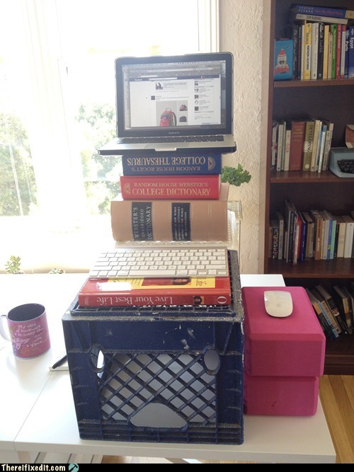 Let’s think about what you’re risking here. Most likely, your desktop holds thousands of dollars worth of hardware, meaning your job, your business, etc. are literally balancing on that rickety pile of books. We know it seems like the best use for your old college textbooks or those phone books that (for whatever reason) are still being delivered, but please, for the love of your electronics, reconsider.