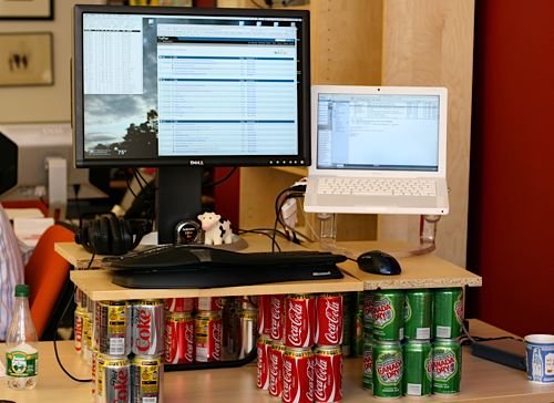 Standing doesn’t do your body any good if your posture is bad. An ergonomically adjusted desk should lift your monitor screen to your eye line, and your elbows should rest at a comfortable 90-degree angle with your wrists floating about your keyboard. If you have to look down at your monitor, you’re likely to develop a stiff neck. And a keyboard that is even slightly too high or low can cause your wrists and forearms to ache. An average person would probably need 1.5 to 2 of these Pringles cans to reach their ergonomic height, and, well, refer back to the first point.